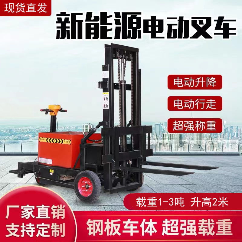内黄县小型电动叉车1吨站驾式2吨液压升高铲车全自动仓储堆高车